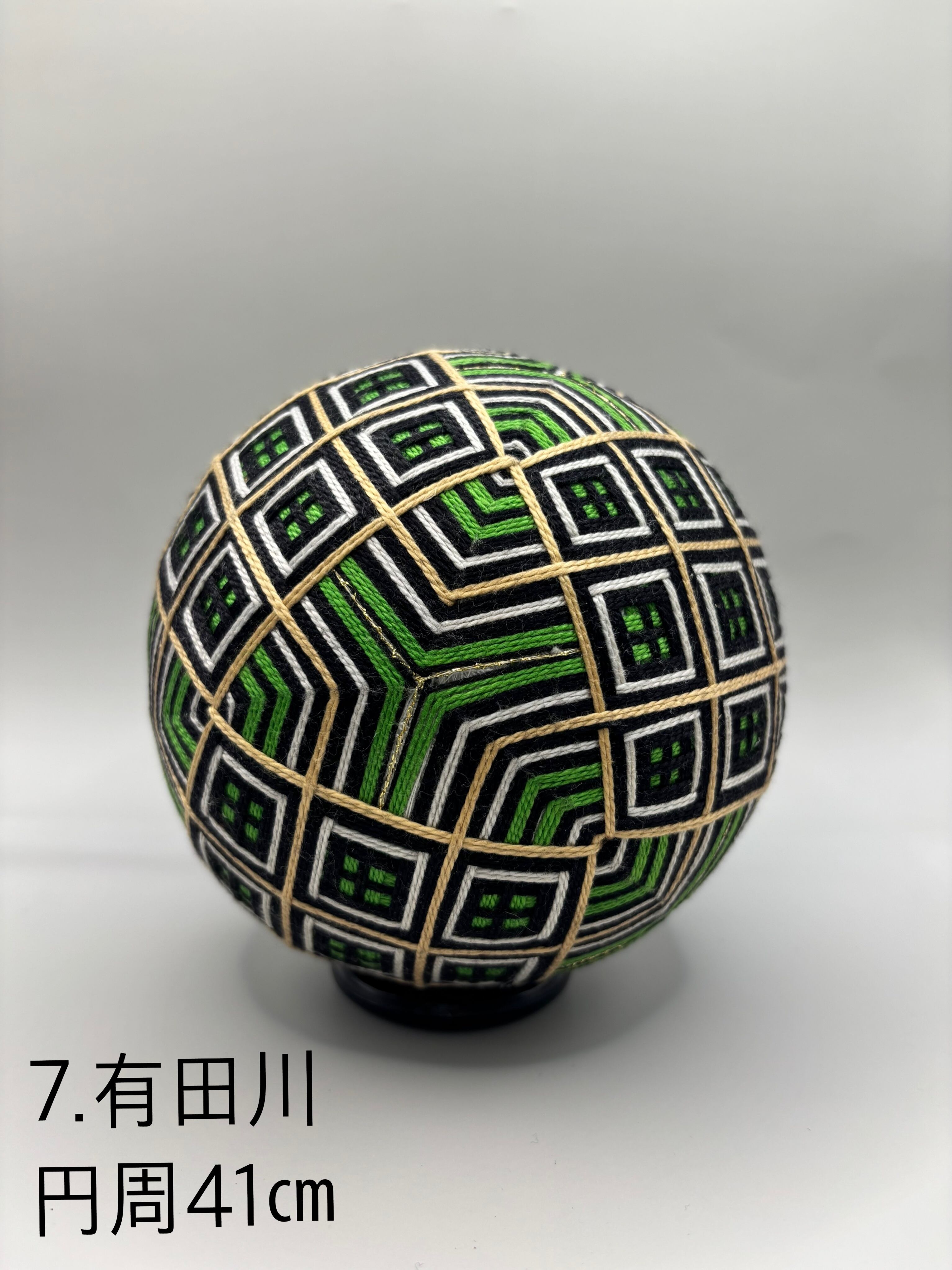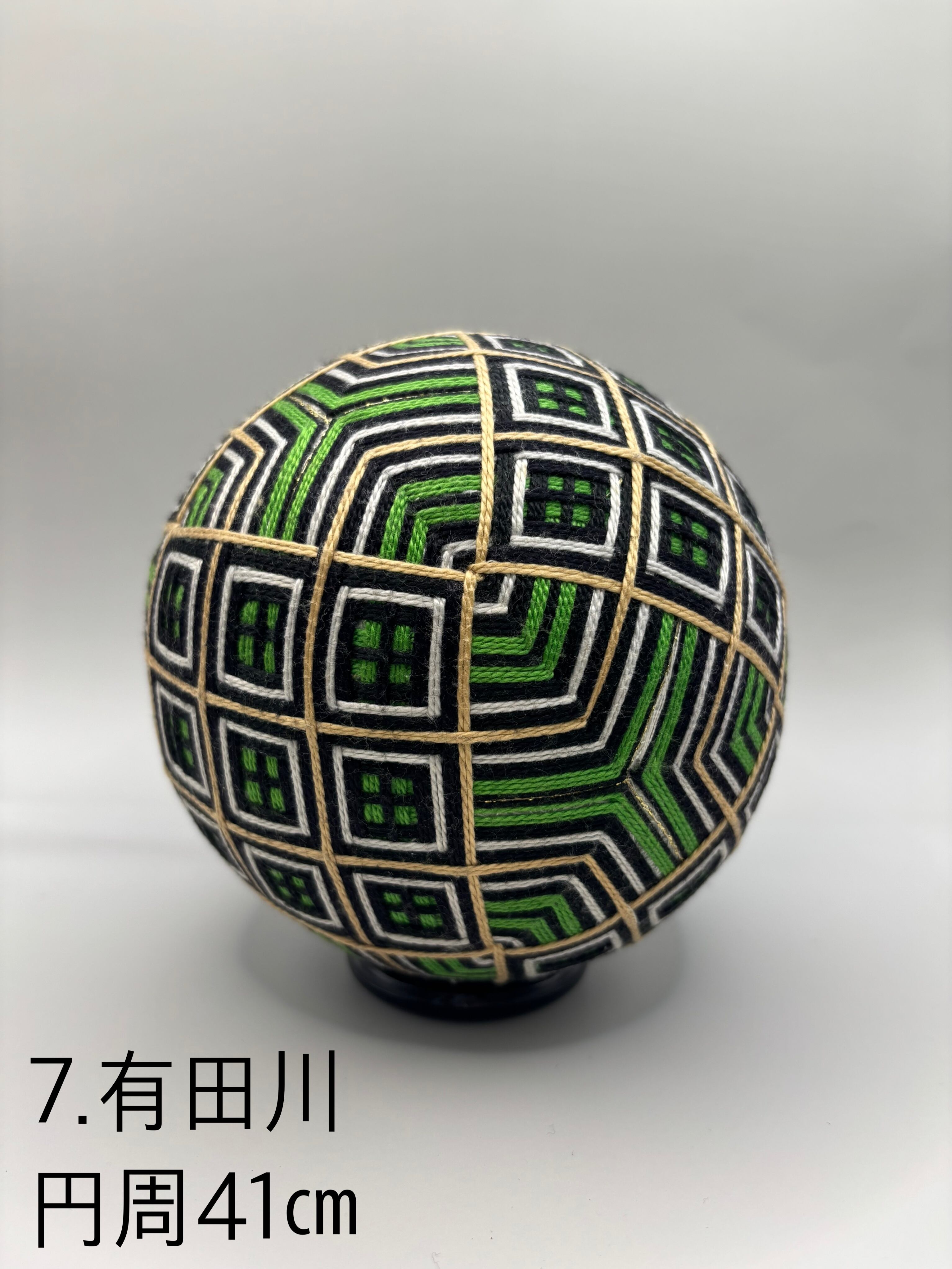 「日本てまりの会」師範高橋紀代子が制作した、清らかな有田川の流れをイメージしたてまりです。