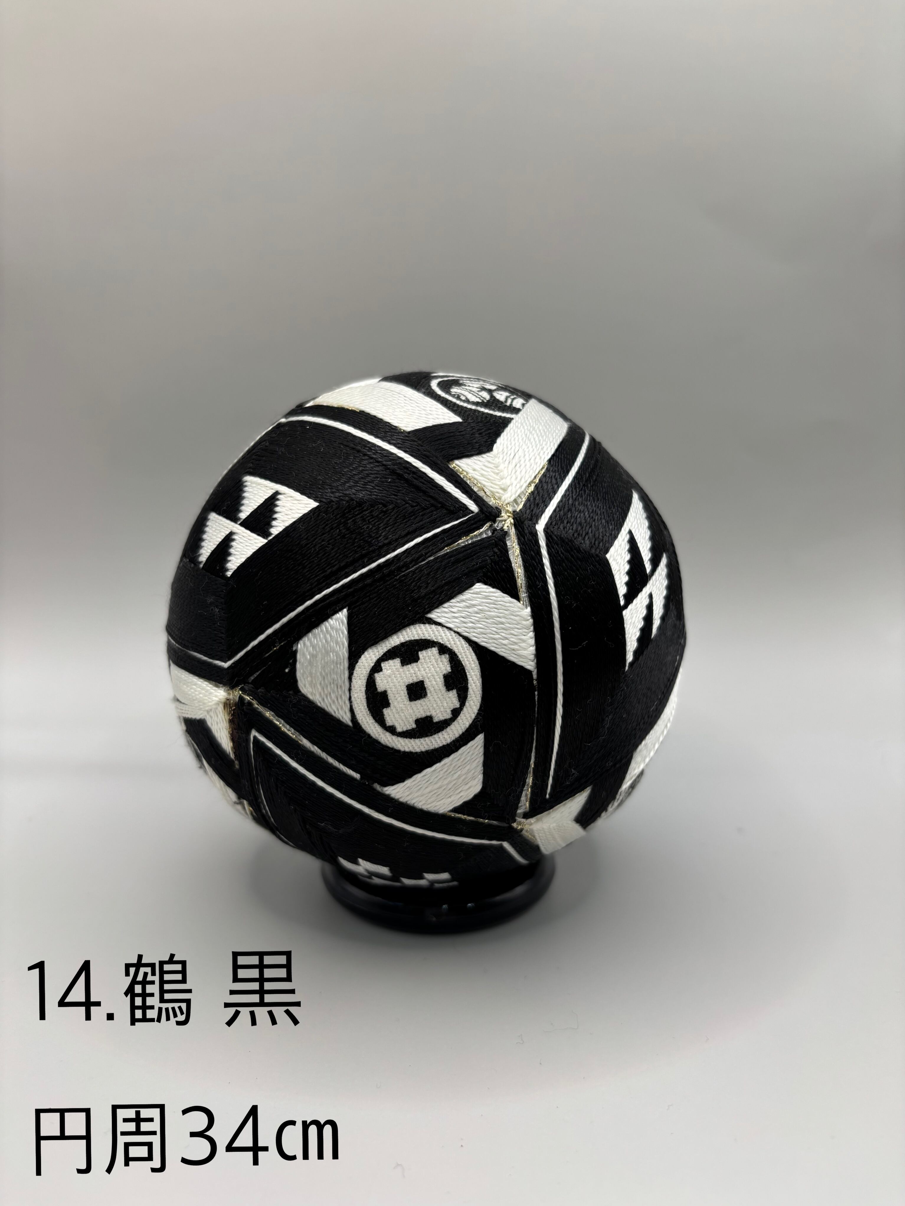 「日本てまりの会」師範高橋紀代子が制作した、優雅な「鶴 黒」のてまりです。