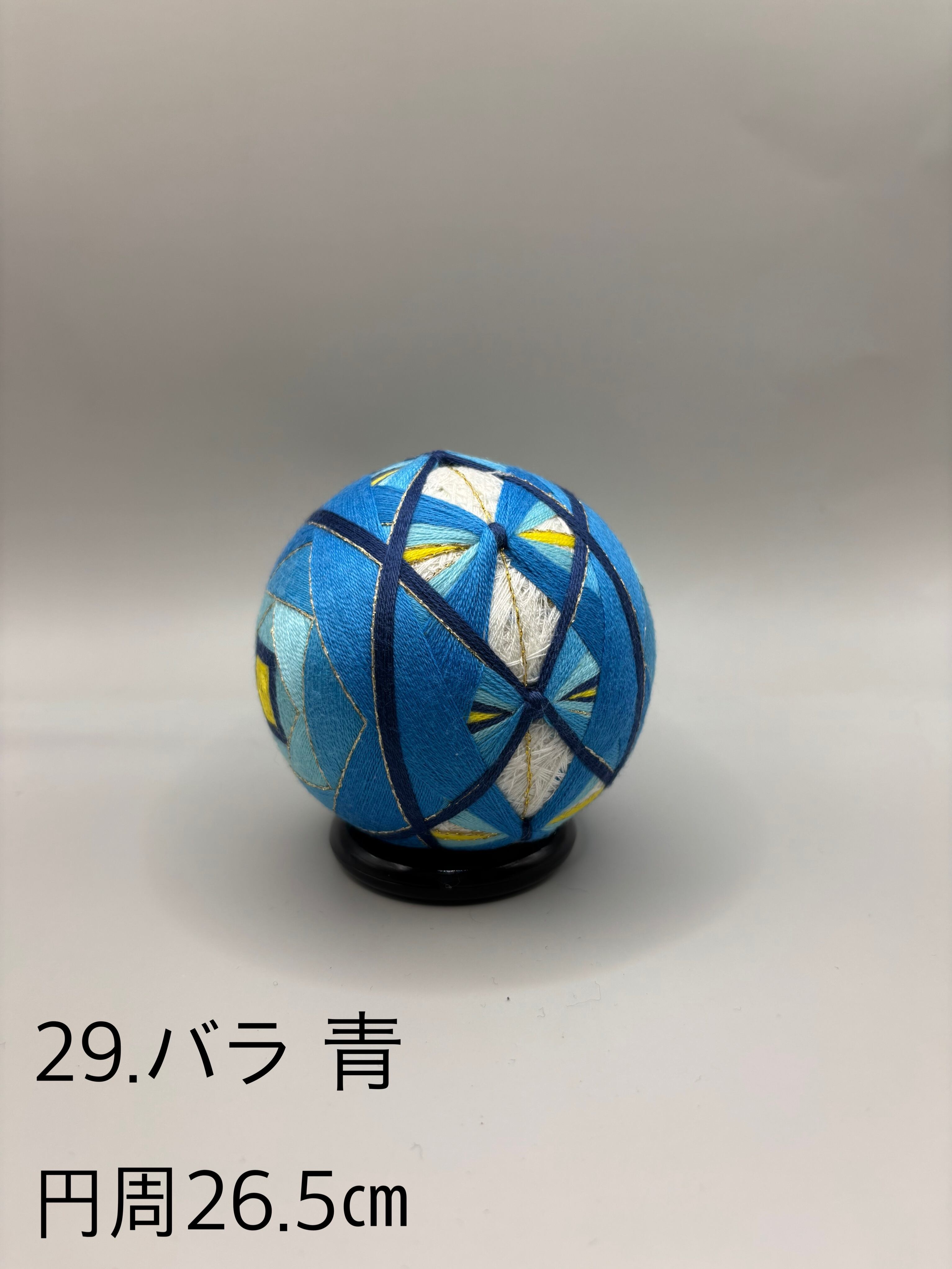てまり糸で作られたこの作品は、円周約27.5cmの大きさで、鮮やかな青色のバラをモチーフにした美しいデザインが特徴です。伝統的な日本の手芸技術を駆使し、バラの持つ神秘的な魅力を表現した作品となっています。