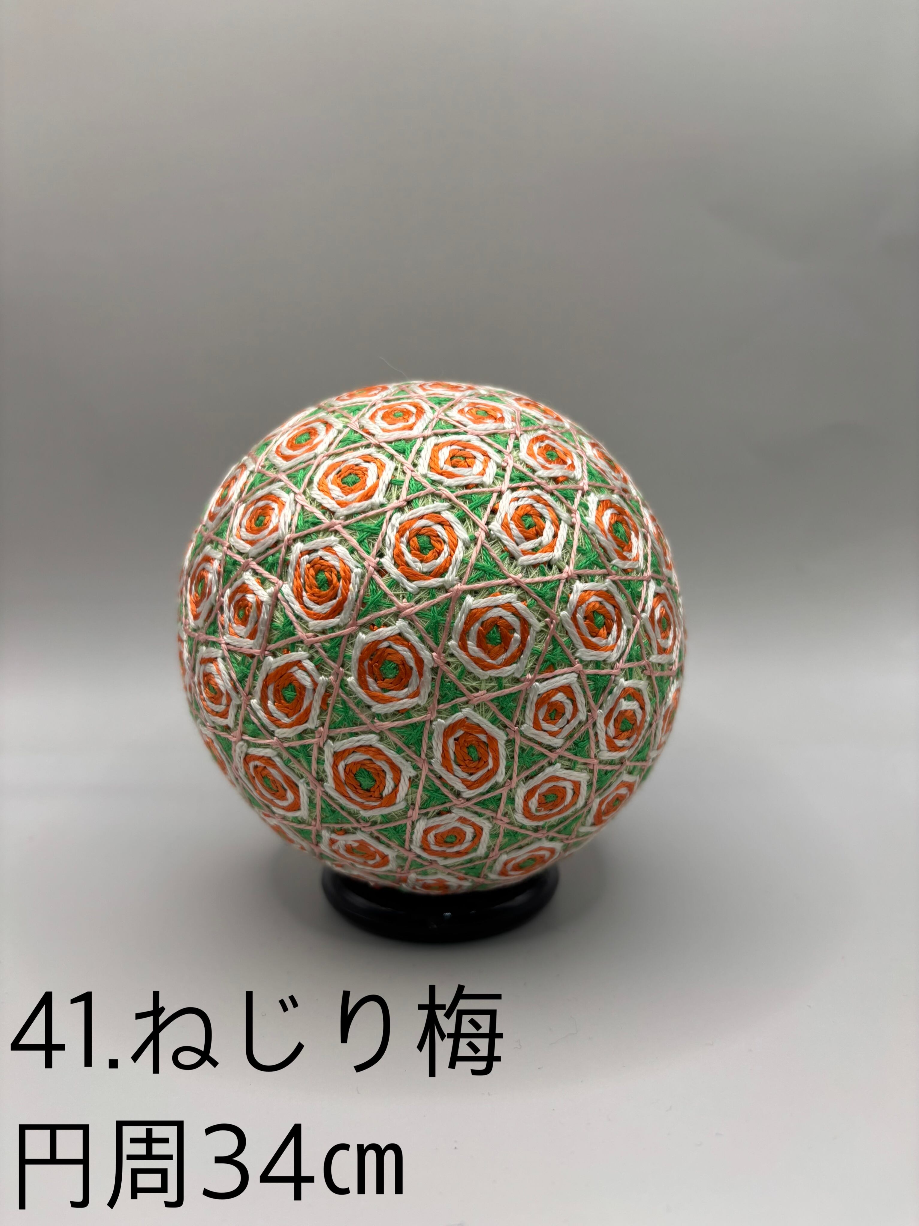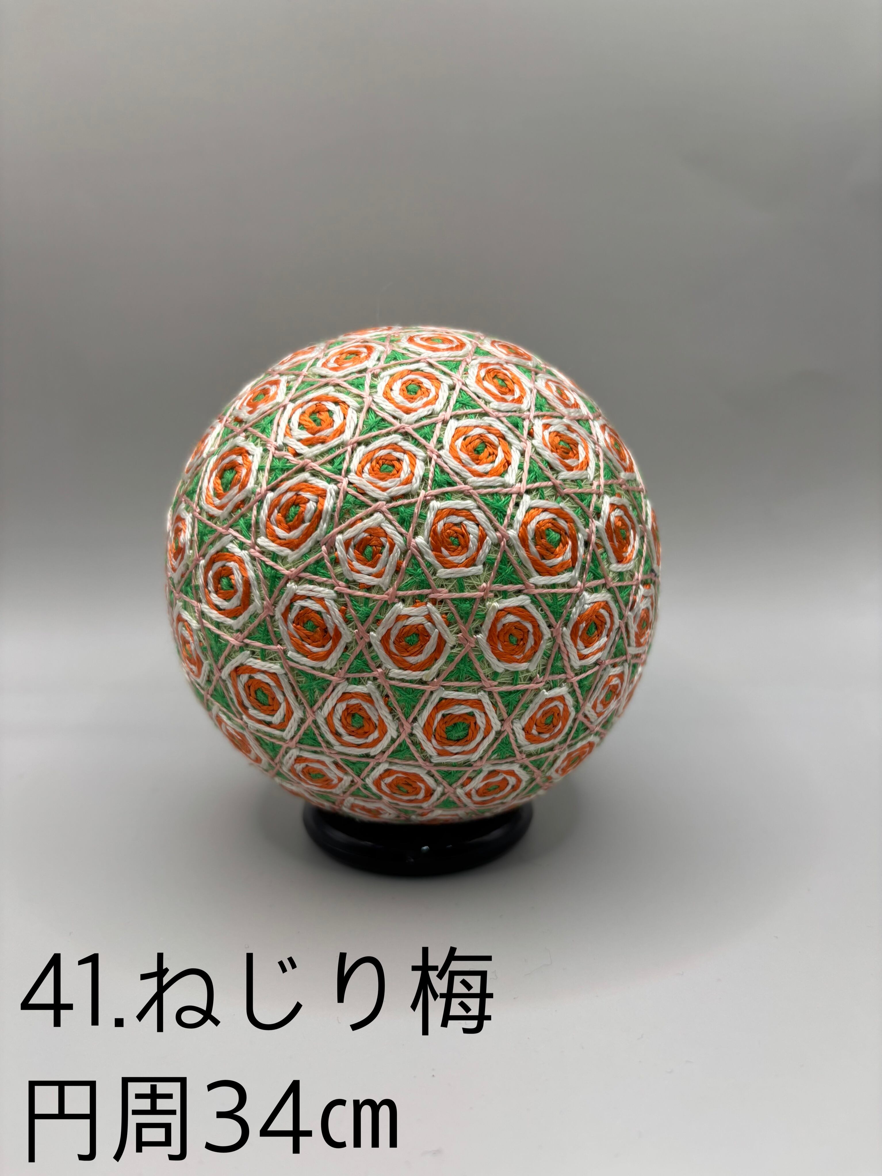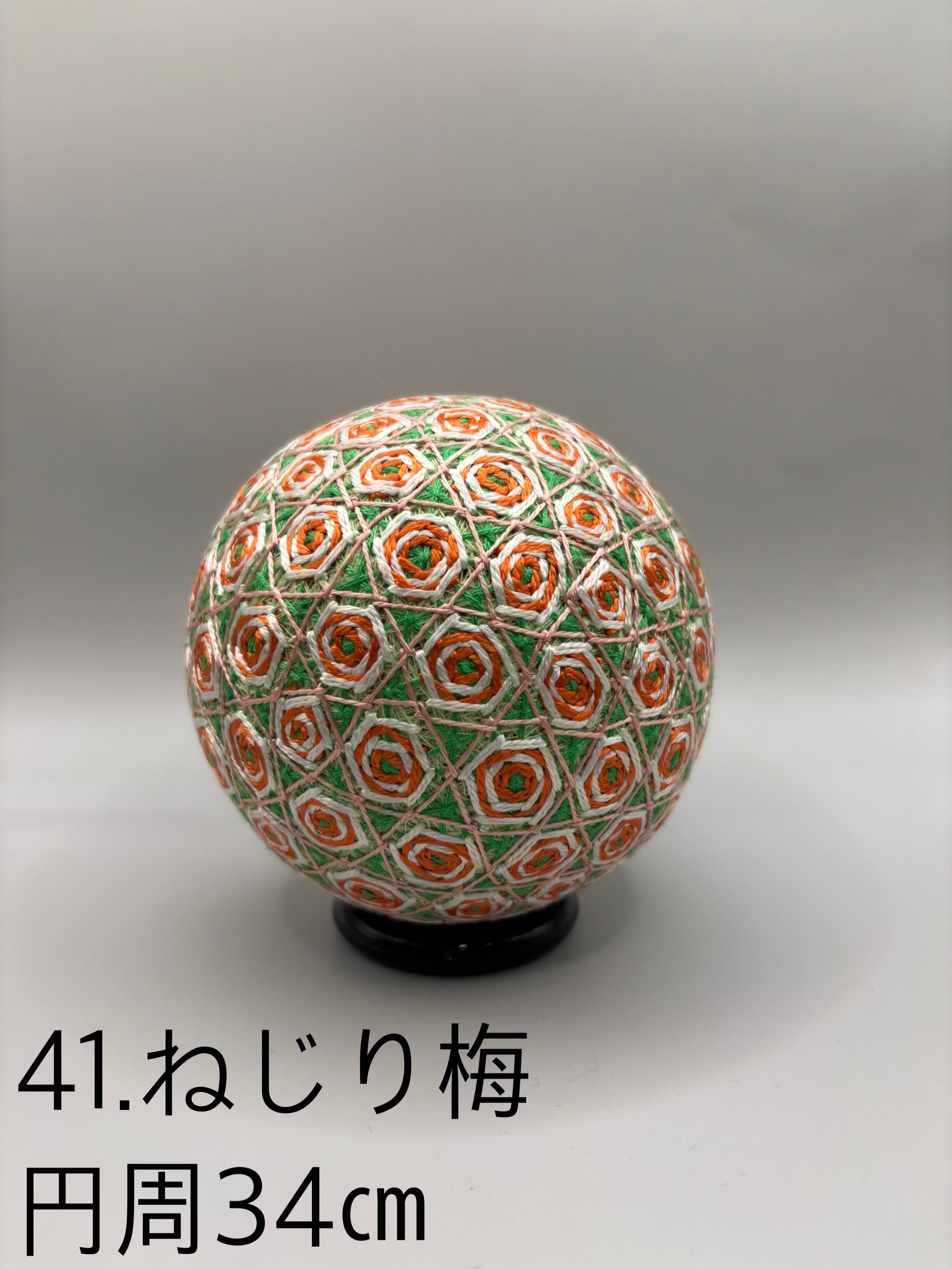 「日本てまりの会」師範高橋紀代子が制作した、優美な「ねじり梅」のてまりです。