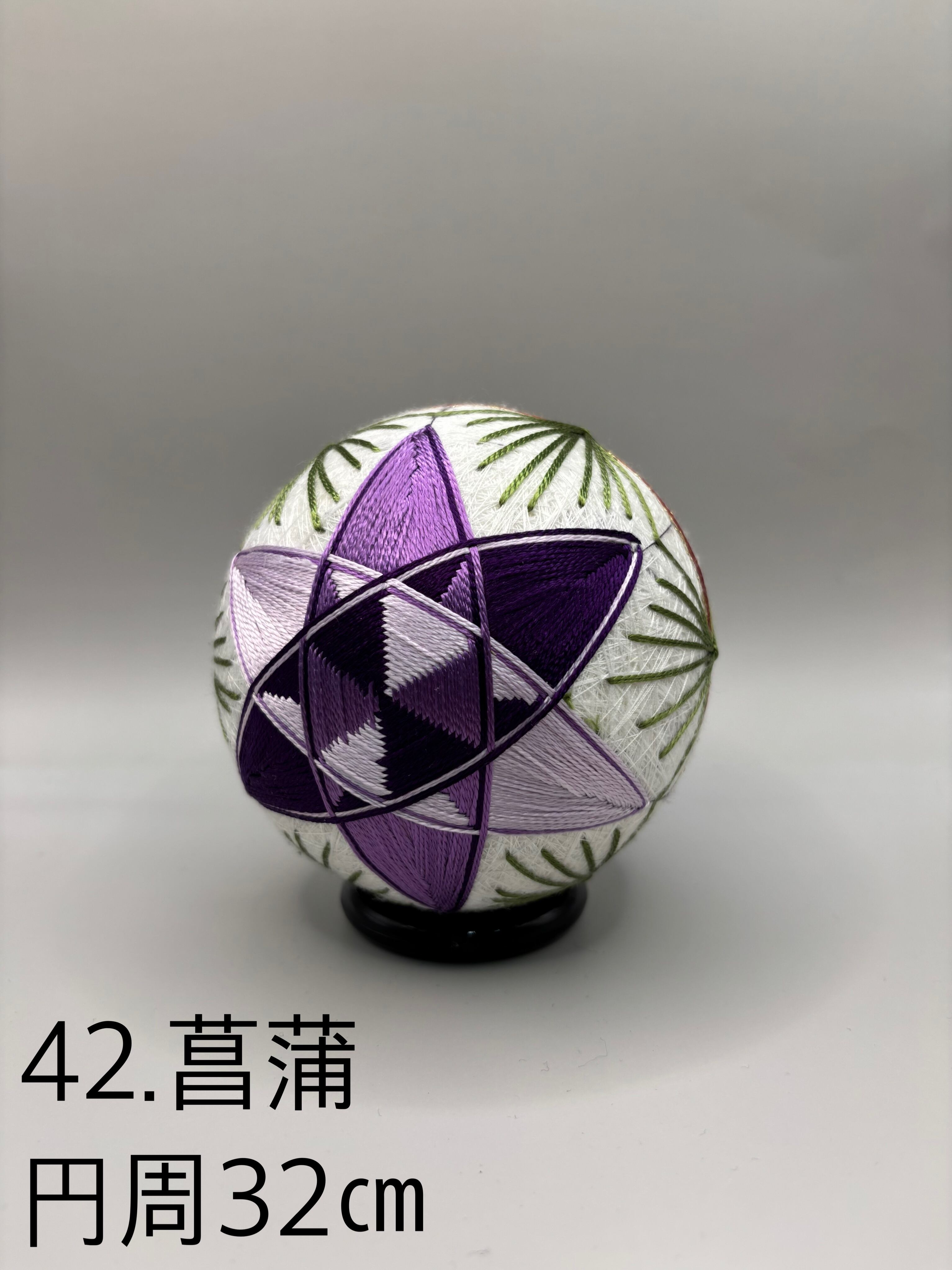 てまり糸で作られたこの作品は、円周約32cmの大きさで、鮮やかな菖蒲の花をモチーフにした美しいデザインが特徴です。伝統的な日本の手芸技術を駆使し、菖蒲が持つ清らかさと初夏の息吹を表現した作品となっています。