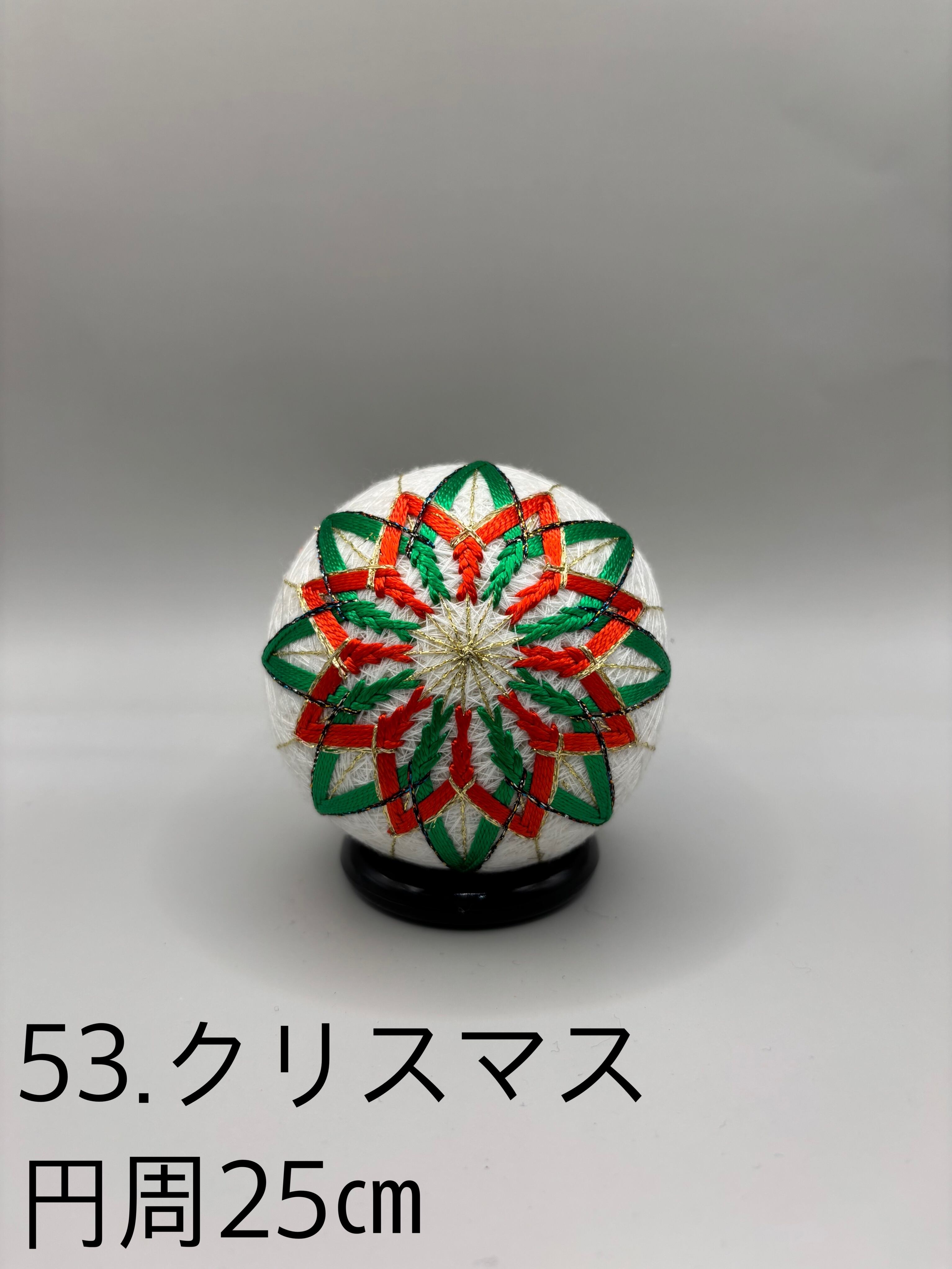 「日本てまりの会」師範高橋紀代子が制作した、心躍る「53.クリスマス」のてまりです。