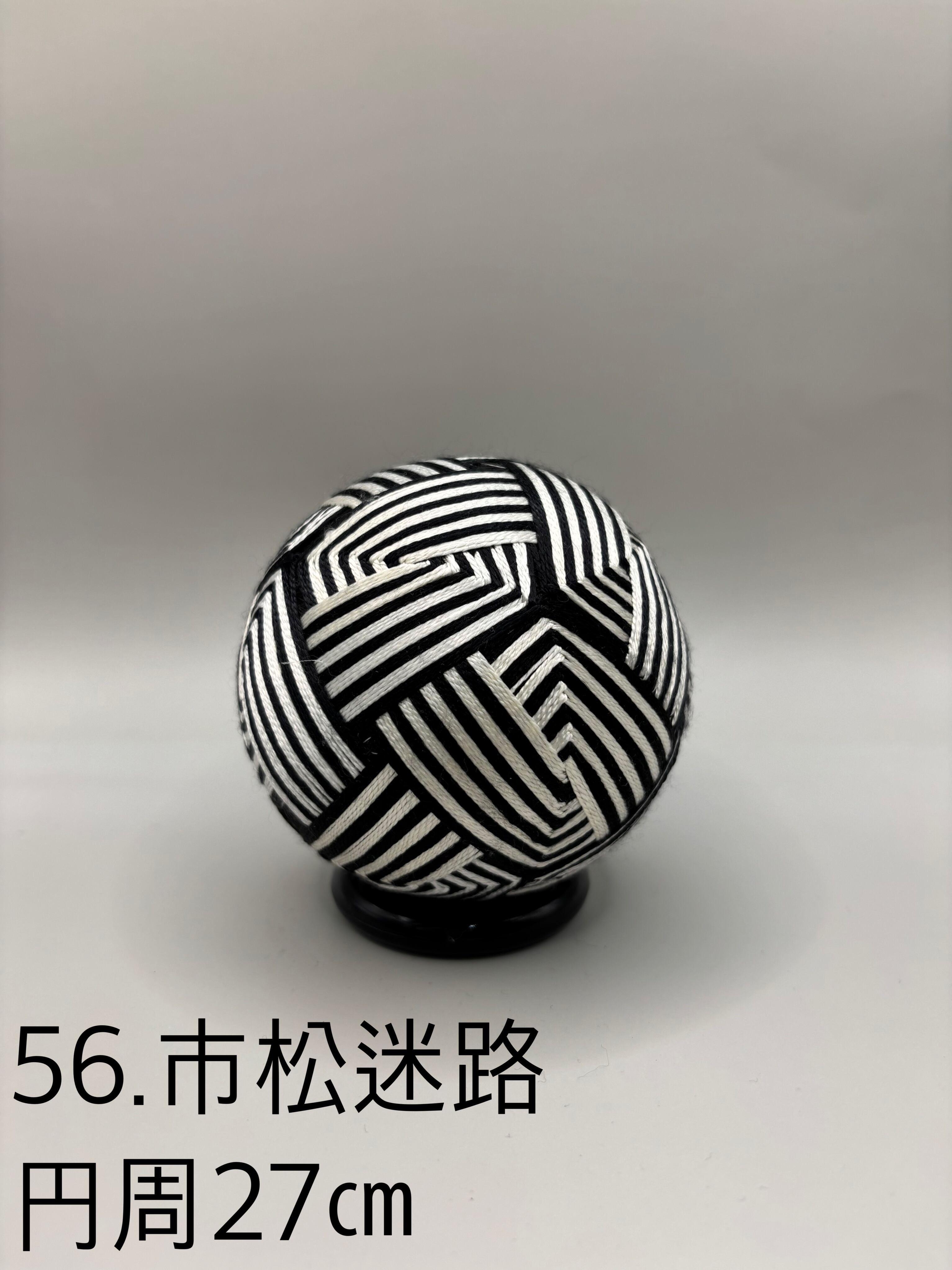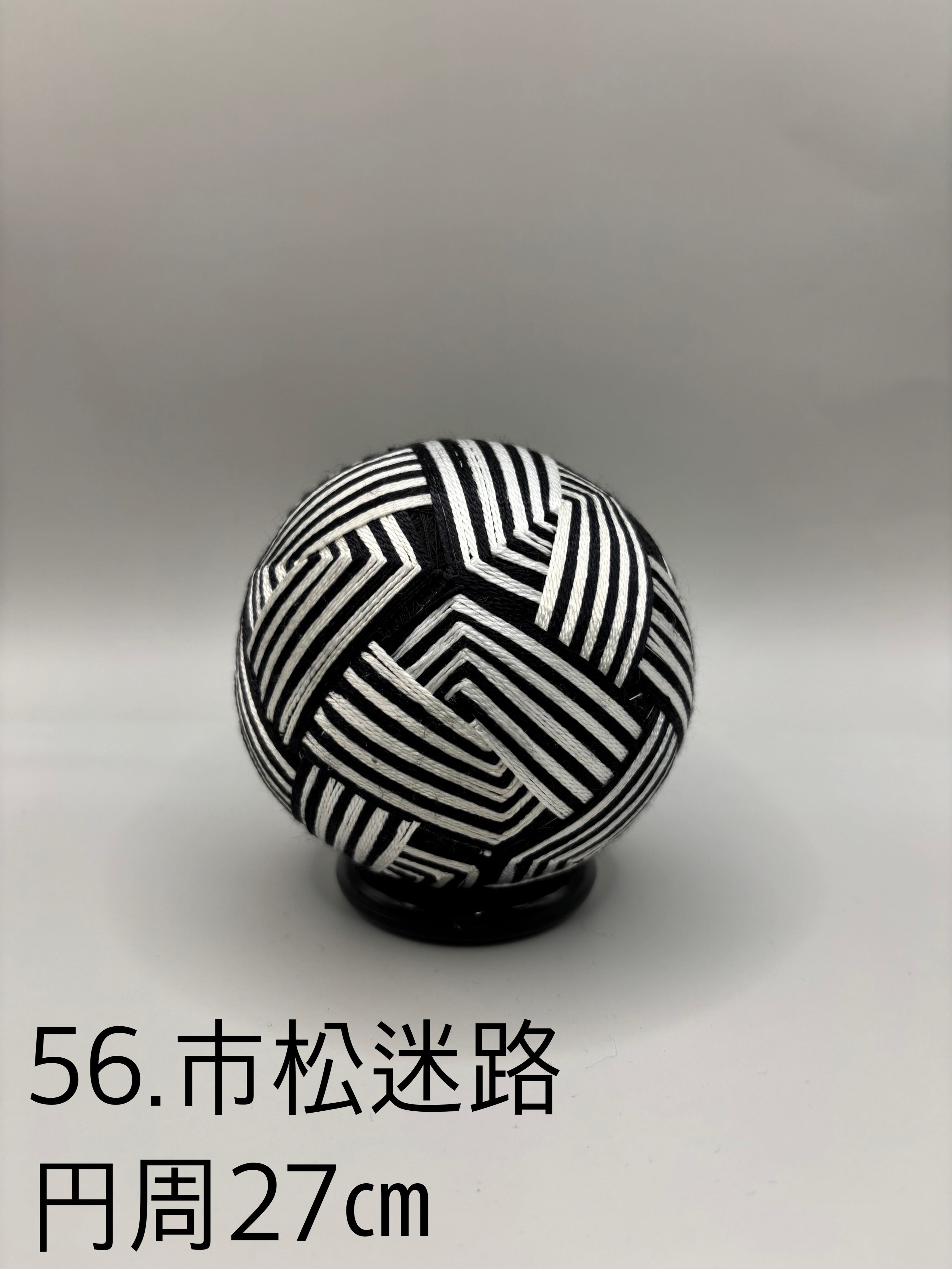 「日本てまりの会」師範高橋紀代子が制作した、迷路の楽しさを表現した「56.市松迷路」のてまりです。