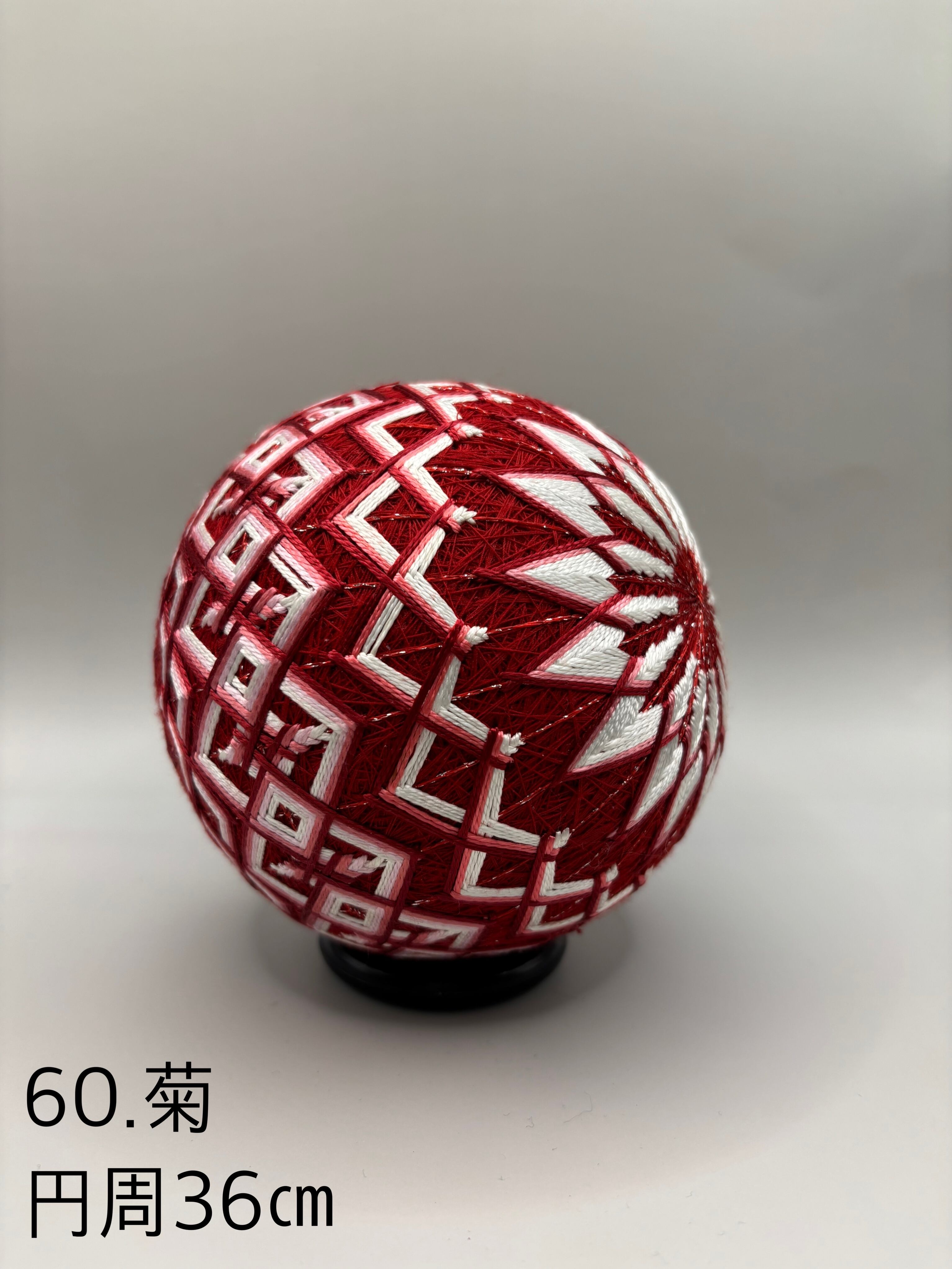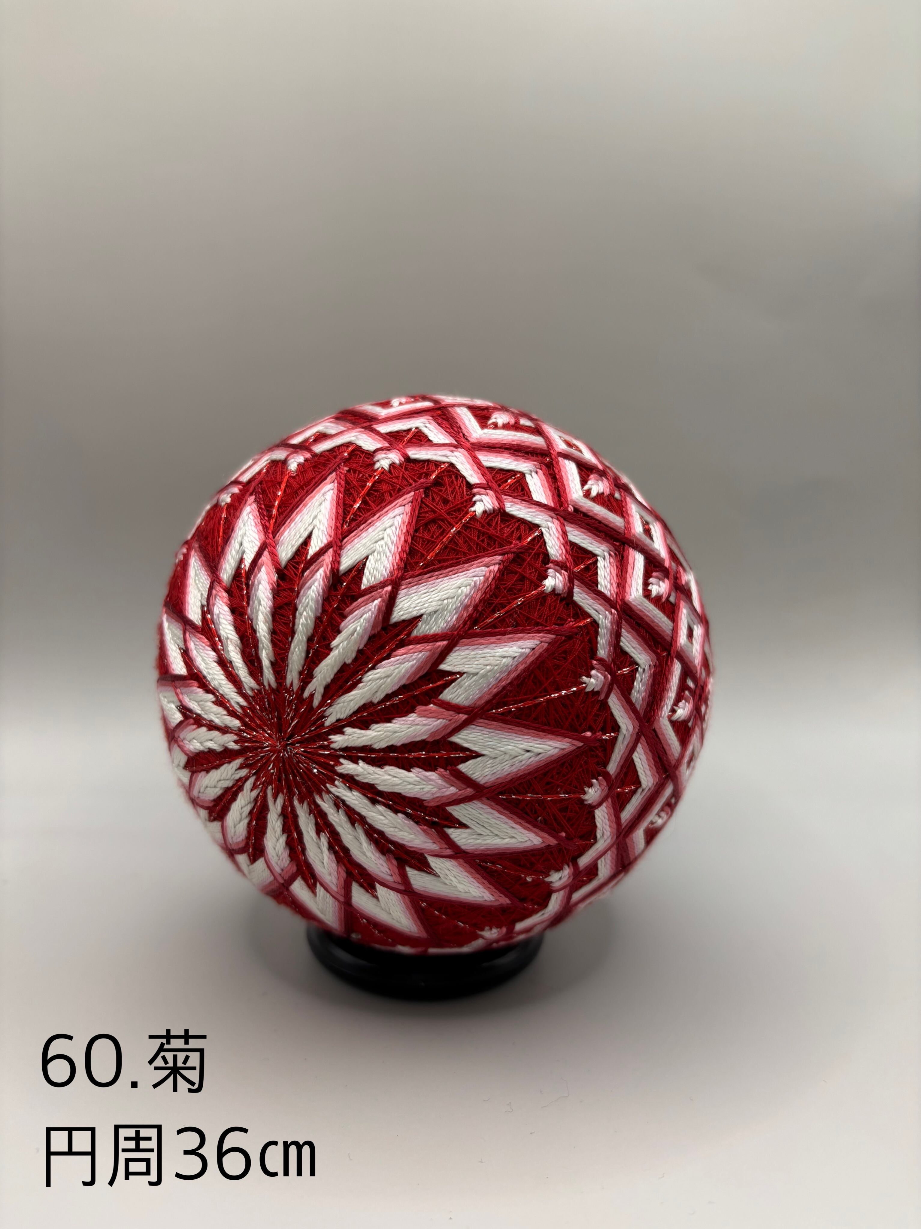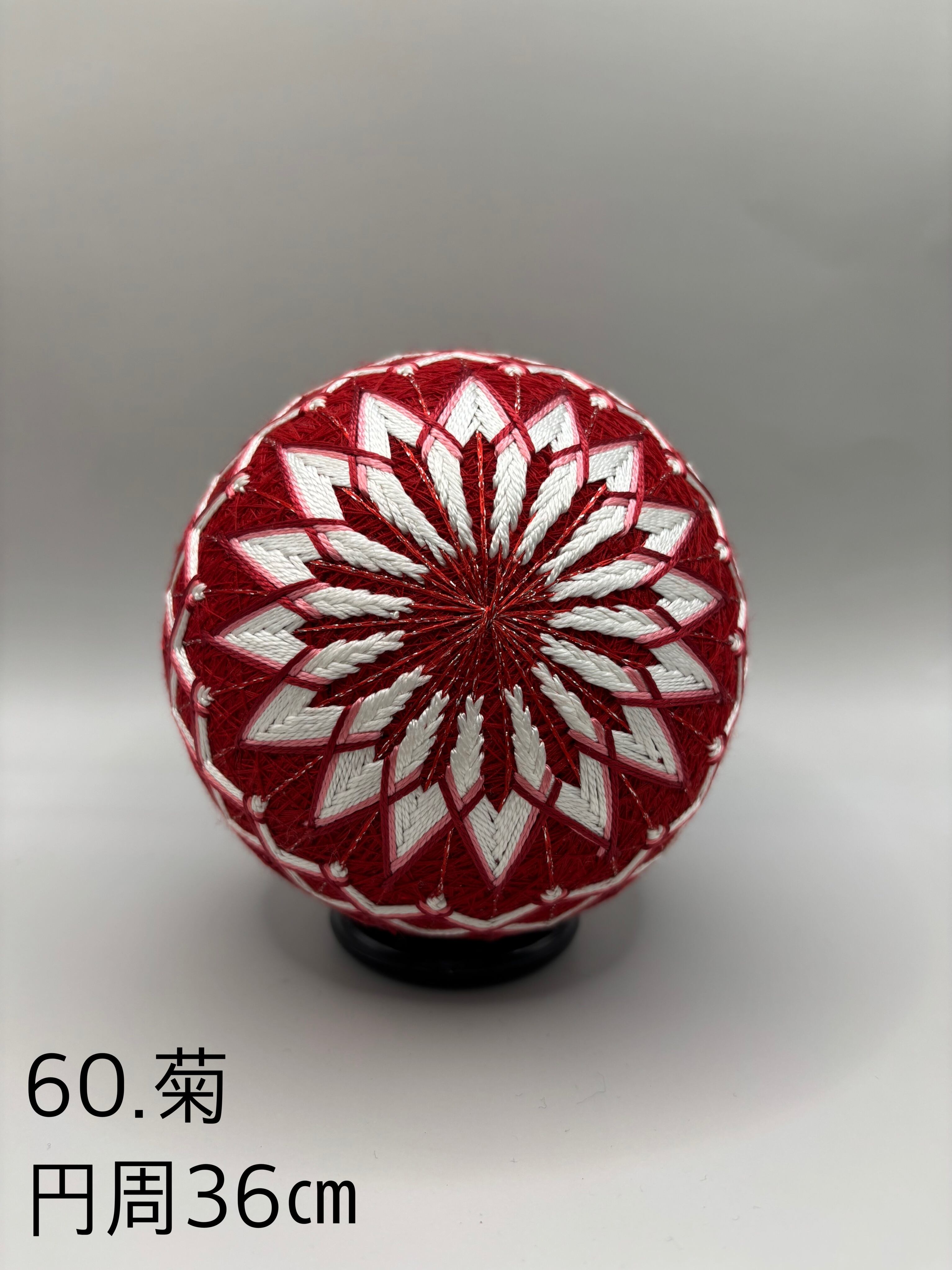「日本てまりの会」師範高橋紀代子が制作した、優雅な美しさを持つ「60.菊」のてまりです。