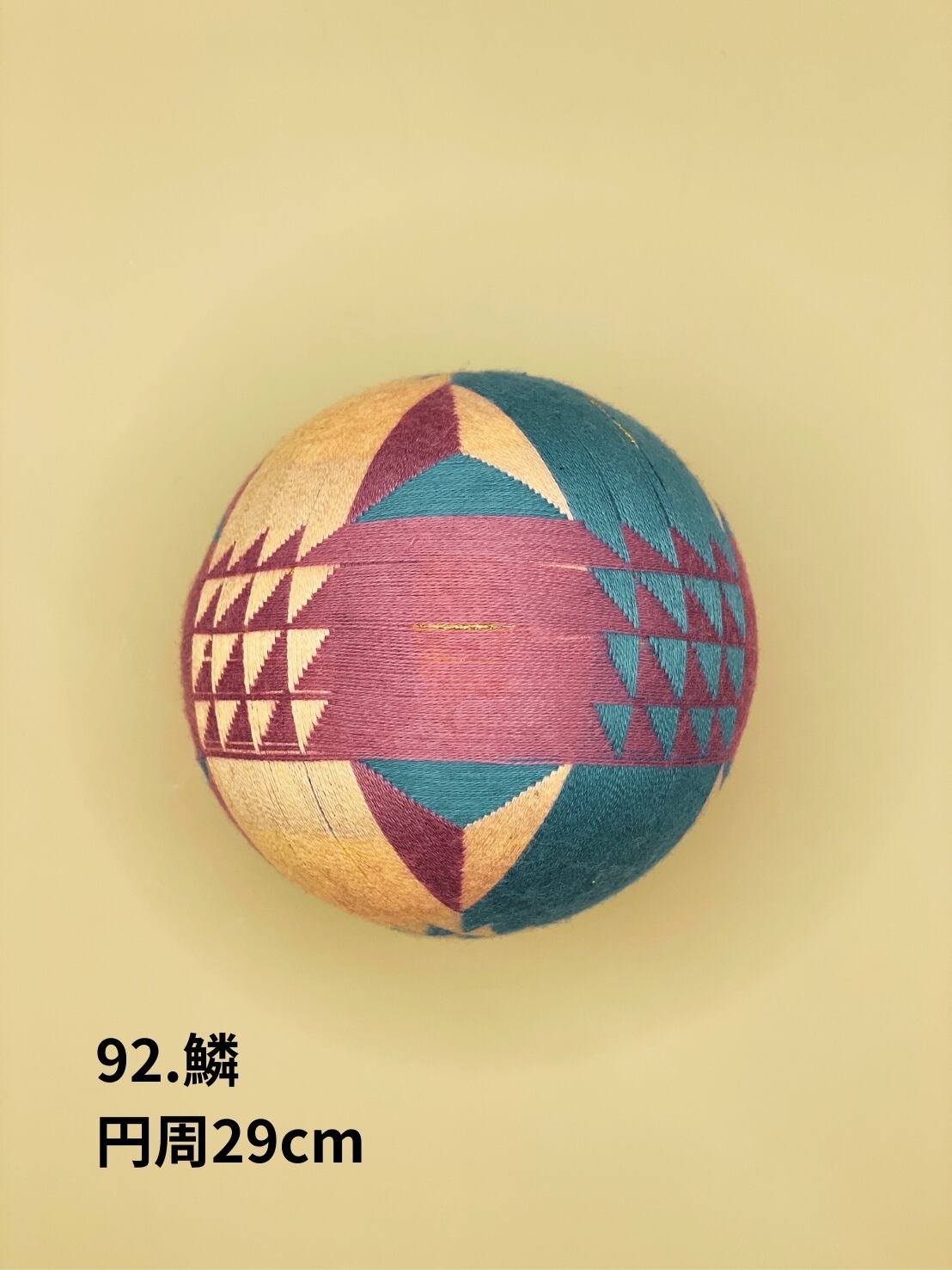 「日本てまりの会」師範高橋紀代子が制作した、優雅で独特の美しさが際立つ「92.鱗」のてまりです。