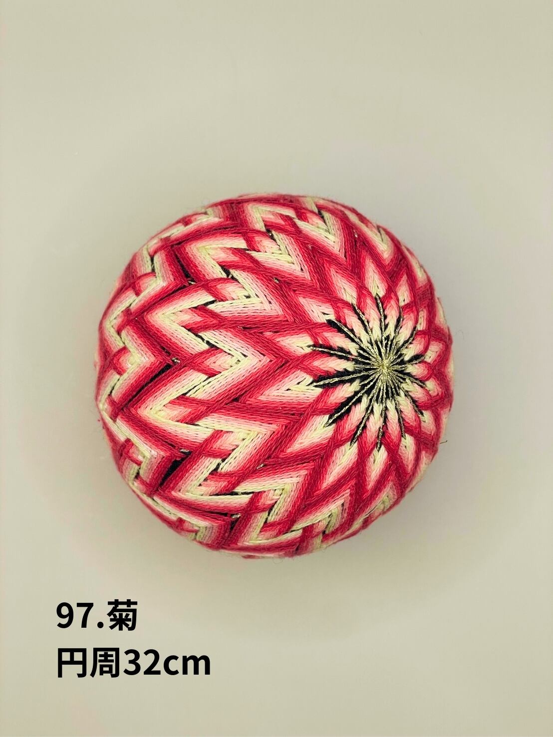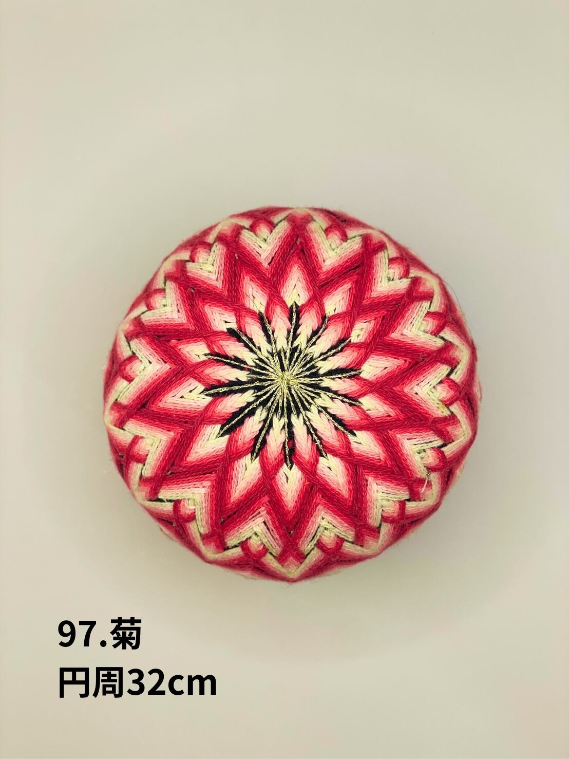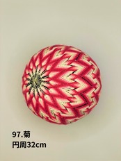 「日本てまりの会」師範高橋紀代子が制作した、優雅で独特の美しさが際立つ「97.菊」のてまりです。