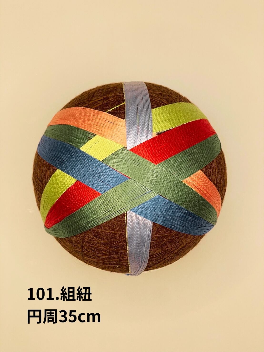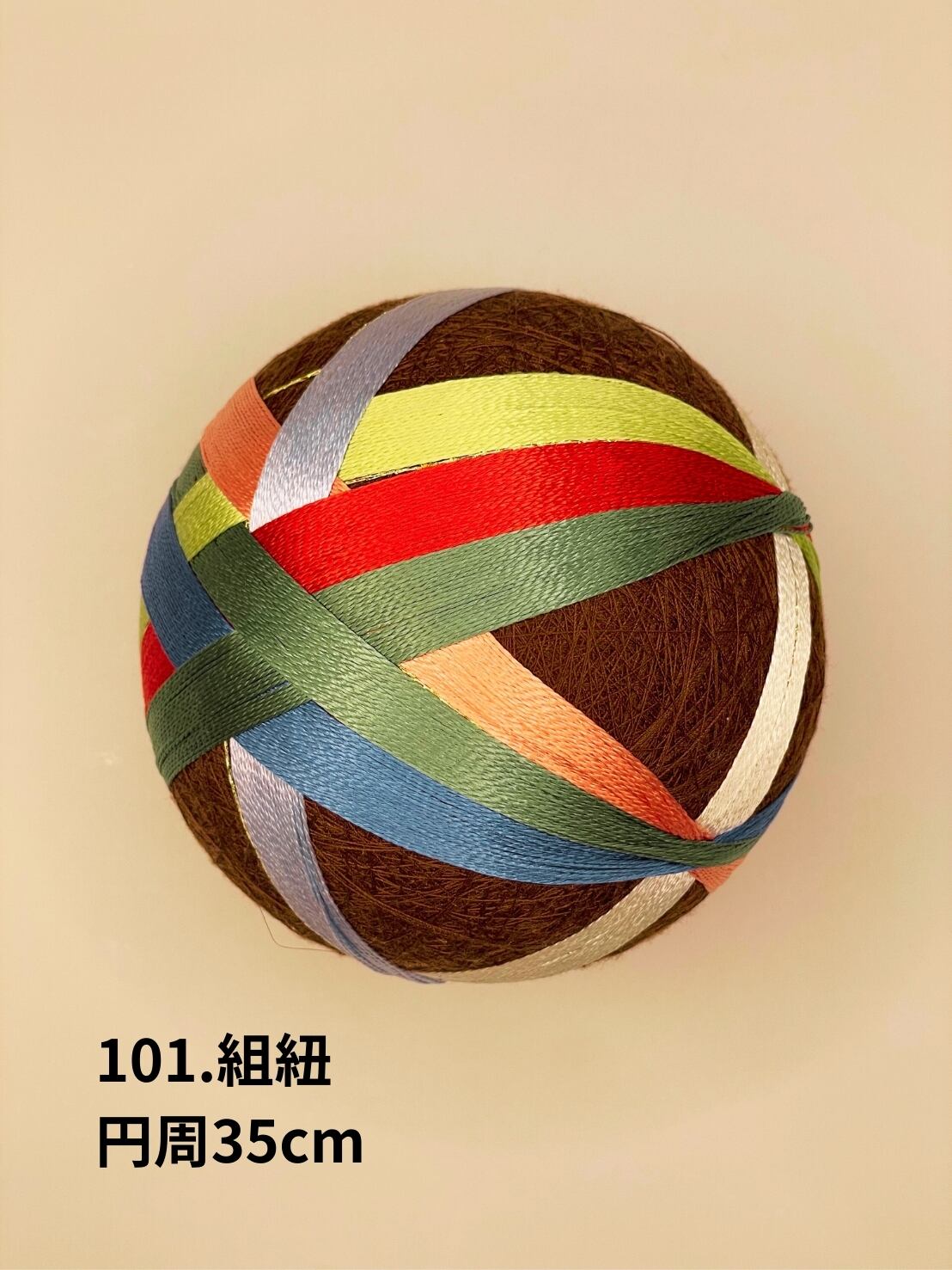 「日本てまりの会」師範高橋紀代子が制作した、優雅で独特の美しさが際立つ「101.組紐」のてまりです。