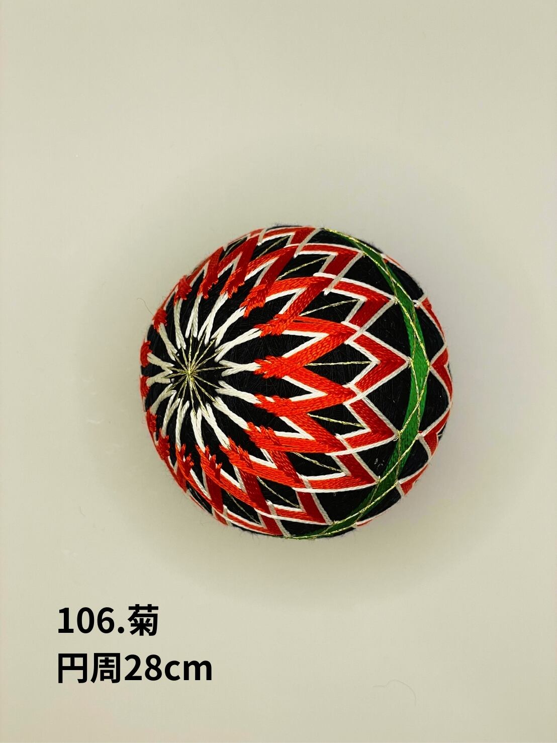 てまり糸で作られたこの作品は、円周約28cmのサイズで、菊模様をテーマにした伝統的で華やかなデザインが特徴です。日本の伝統的な手芸技術を駆使し、菊模様が持つ繊細さと美しさを見事に表現しています。