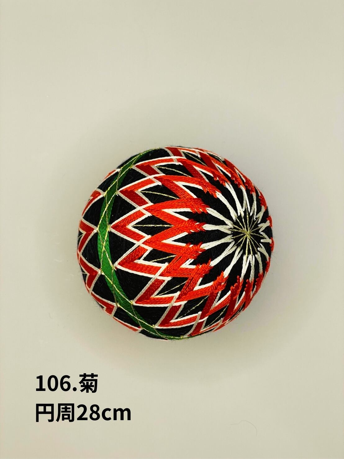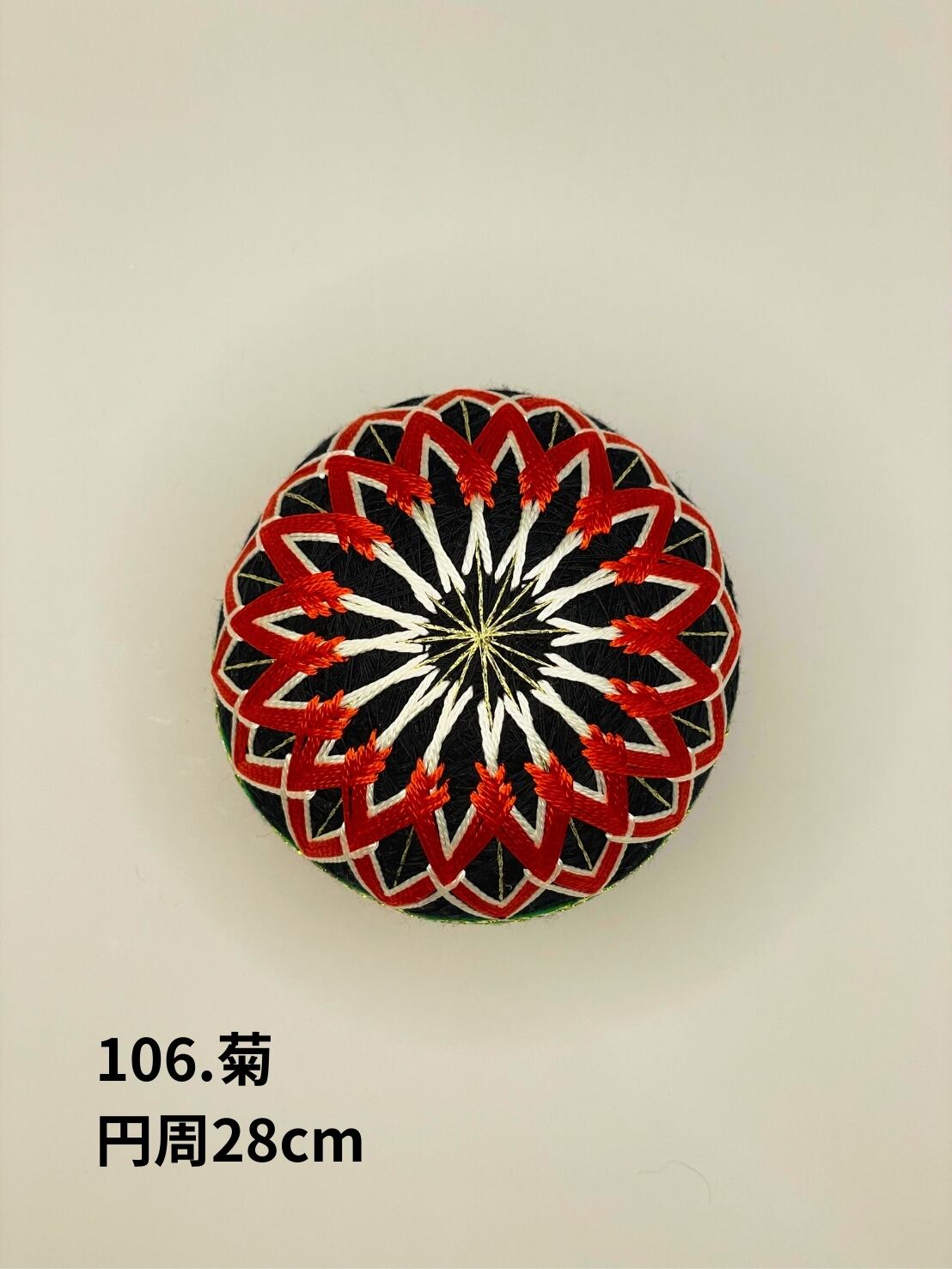 「日本てまりの会」師範高橋紀代子が制作した、優雅で独特の美しさが際立つ「106.菊」のてまりです。