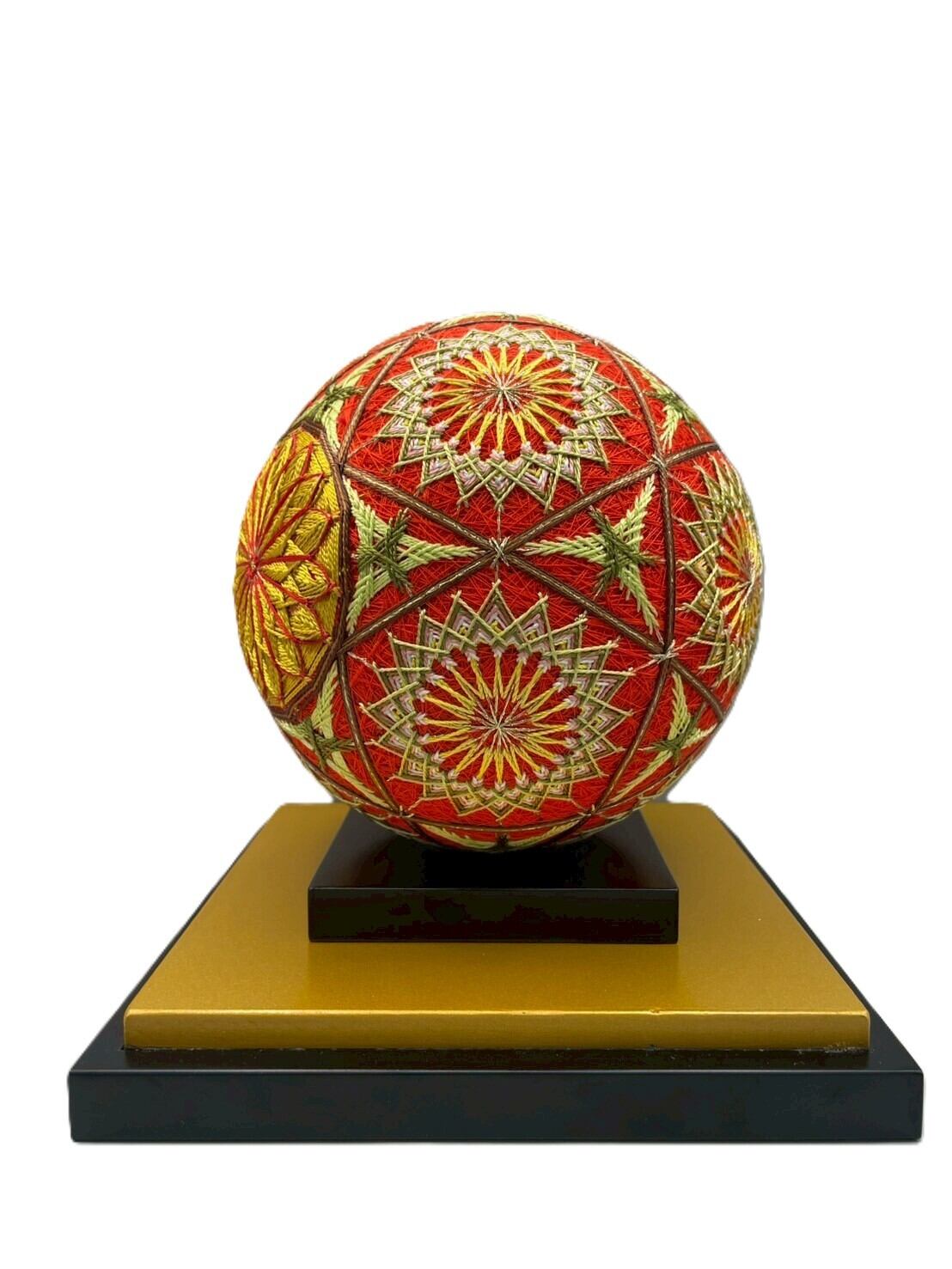 菊をテーマにしたこの作品は、円周約50cmのサイズで、伝統的な美しさと品格を感じさせるデザインが特徴です。日本の熟練した技術を生かし、深みのある色合いと精緻な刺繍が見事に調和しています。