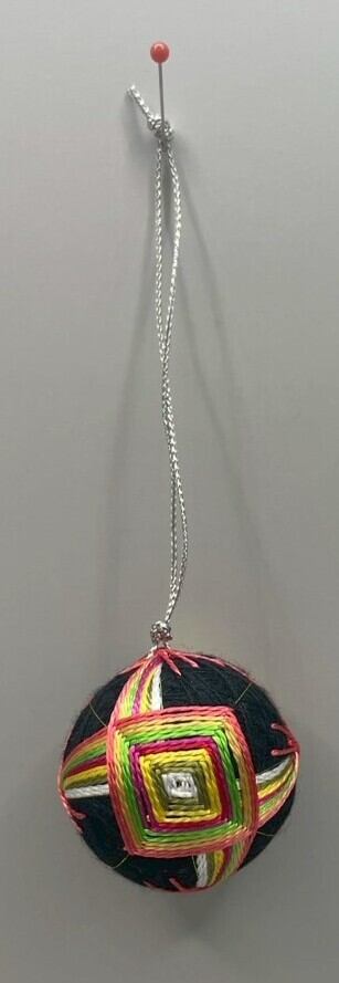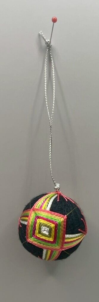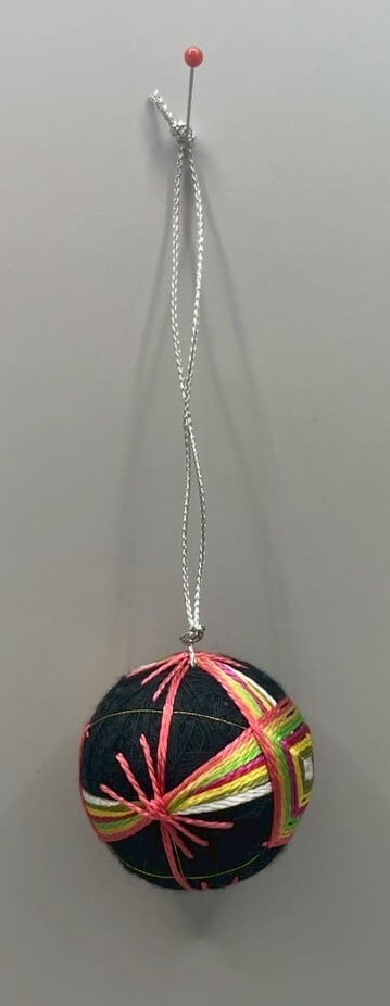 色とりどりの糸を使ったこの作品は、円周約11cmのサイズで、繊細で親しみやすいデザインが特徴です。日本の熟練した技術を生かし、華やかな色合いと精緻な刺繍が美しく調和しています。