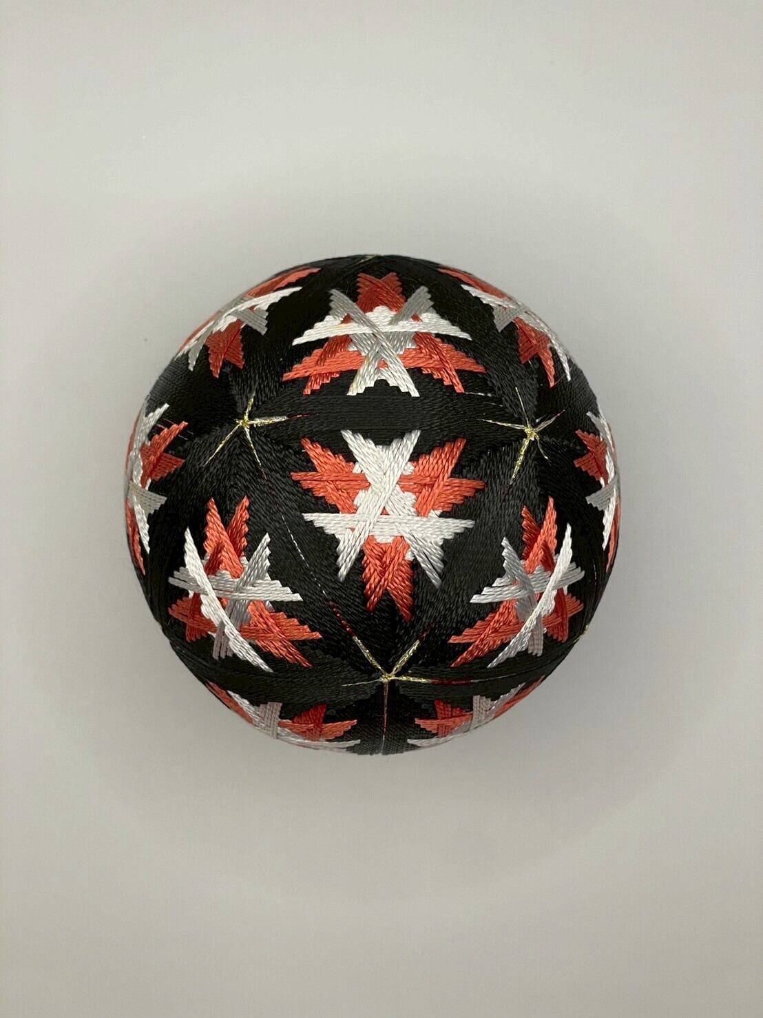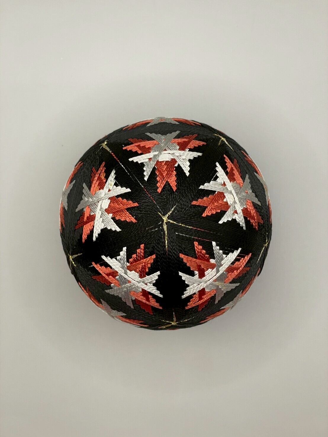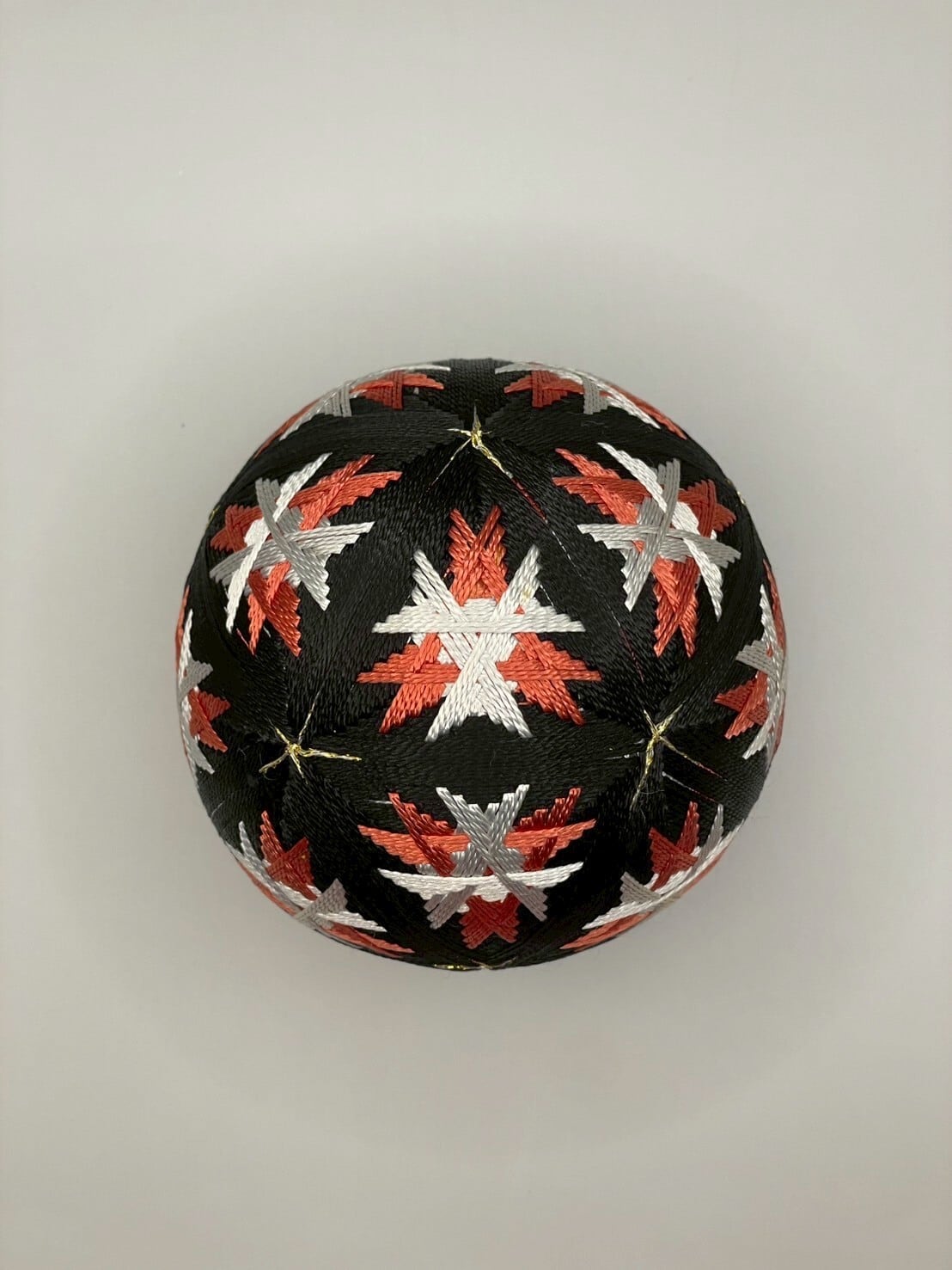 色とりどりの糸を使ったこの作品は、円周約30cmのサイズで、繊細で親しみやすいデザインが特徴です。日本の熟練した技術を生かし、華やかな色合いと精緻な刺繍が美しく調和しています。