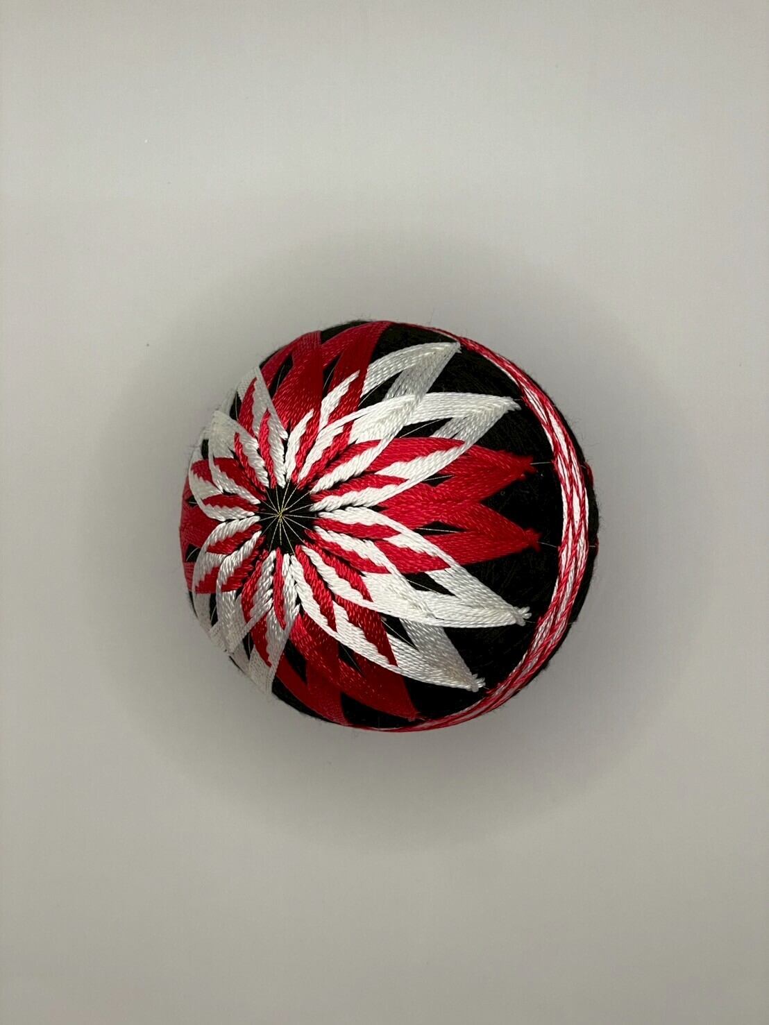 色とりどりの糸を使ったこの作品は、円周約29cmのサイズで、繊細で親しみやすいデザインが特徴です。日本の熟練した技術を生かし、華やかな色合いと精緻な刺繍が美しく調和しています。