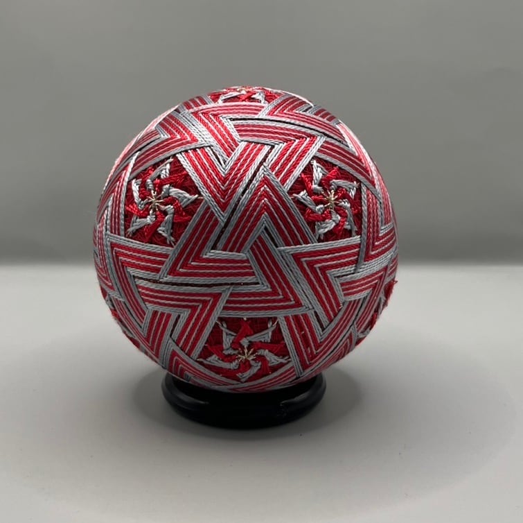 色とりどりの糸を使ったこの作品は、星形の花びらをモチーフにしたデザインが特徴です。円周約31cmのサイズで、日本の熟練した技術を生かし、幻想的な雰囲気が漂う美しいデザインが施されています。